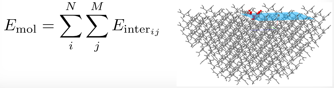 晶体表面分析对于理解溶解、升华、熔化等固态现象很重要。CONFLEX可计算特定晶面上(或内部)分子所受原子间相互作用能总和,进而评估该晶面的稳定性。