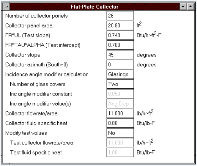 平板集热器参数输入界面